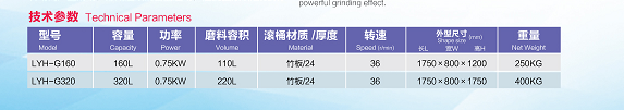 本设备以八角形竹滚桶及传动系统组成,每分钟以36转旋转,当竹桶内放入磨料及工件,竹桶转动时,装载物随着竹桶转动而产生滑动,形成连续的雪崩运动,达到强效研磨效果。